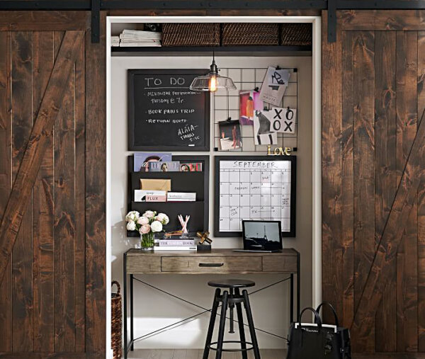 Many homes don’t have a room to spare to use solely as a home office. If that’s true of your home, join the growing trend of creating a pocket office. That’s a small space set aside with a built-in desk and the tech essentials to function as an office. Pocket offices are often set up near high traffic areas such as the kitchen, great room, or tucked away in a closet or under a stairway. With so many of the devices we use now being small and wireless, you don’t need to worry about cord clutter. Just make sure you have plenty of outlets for charging.